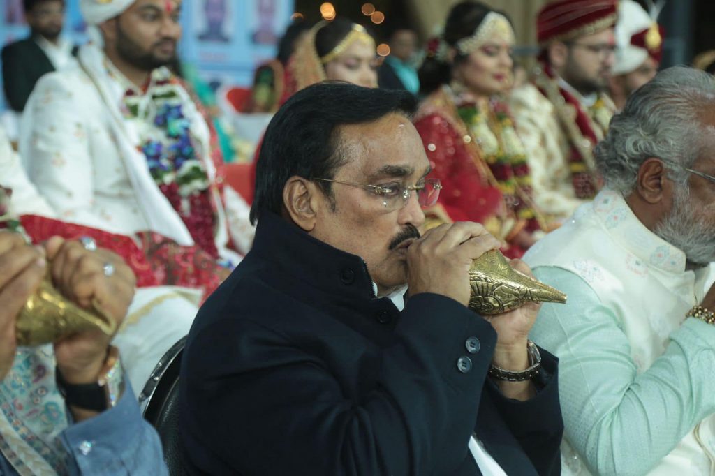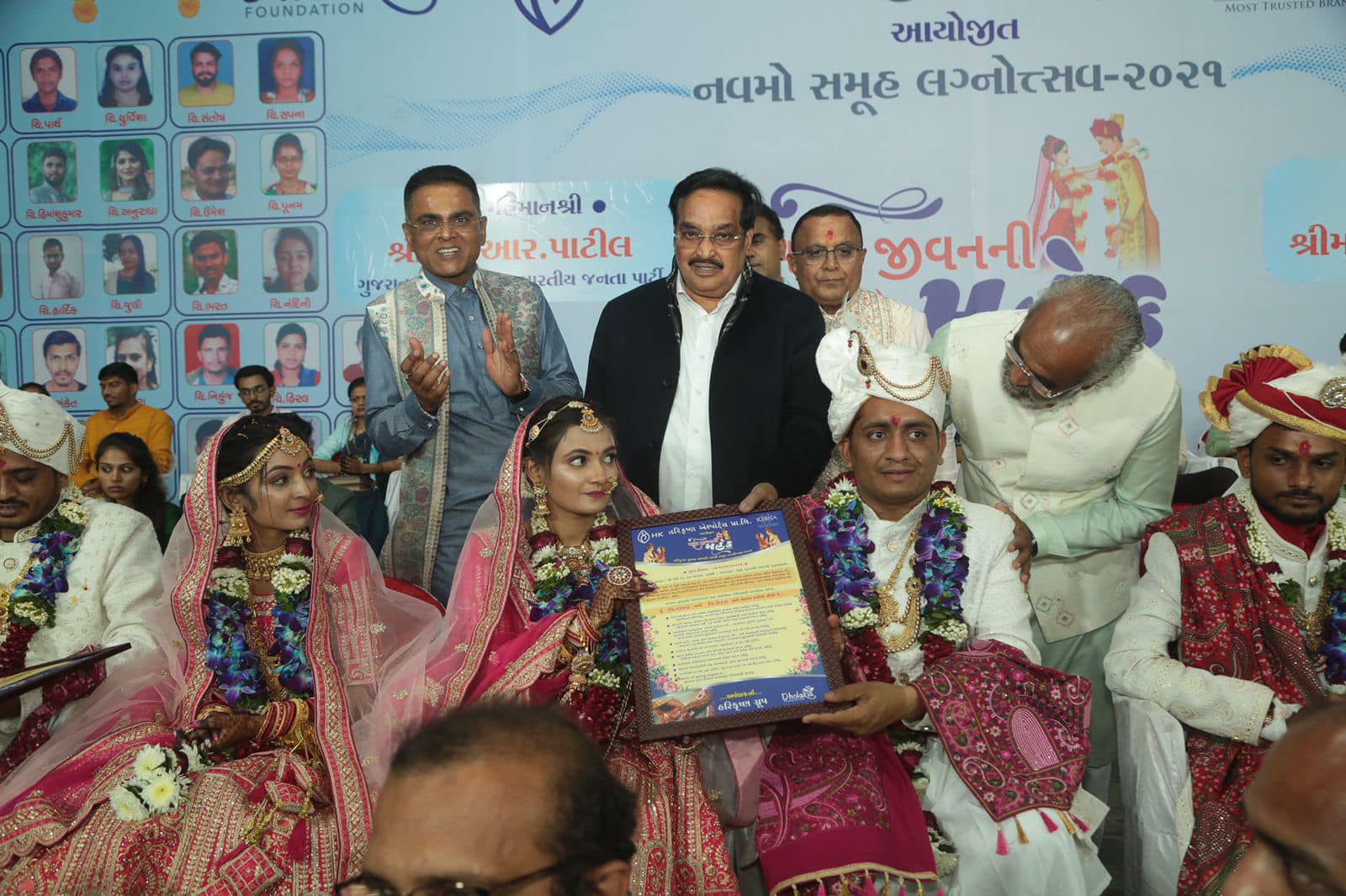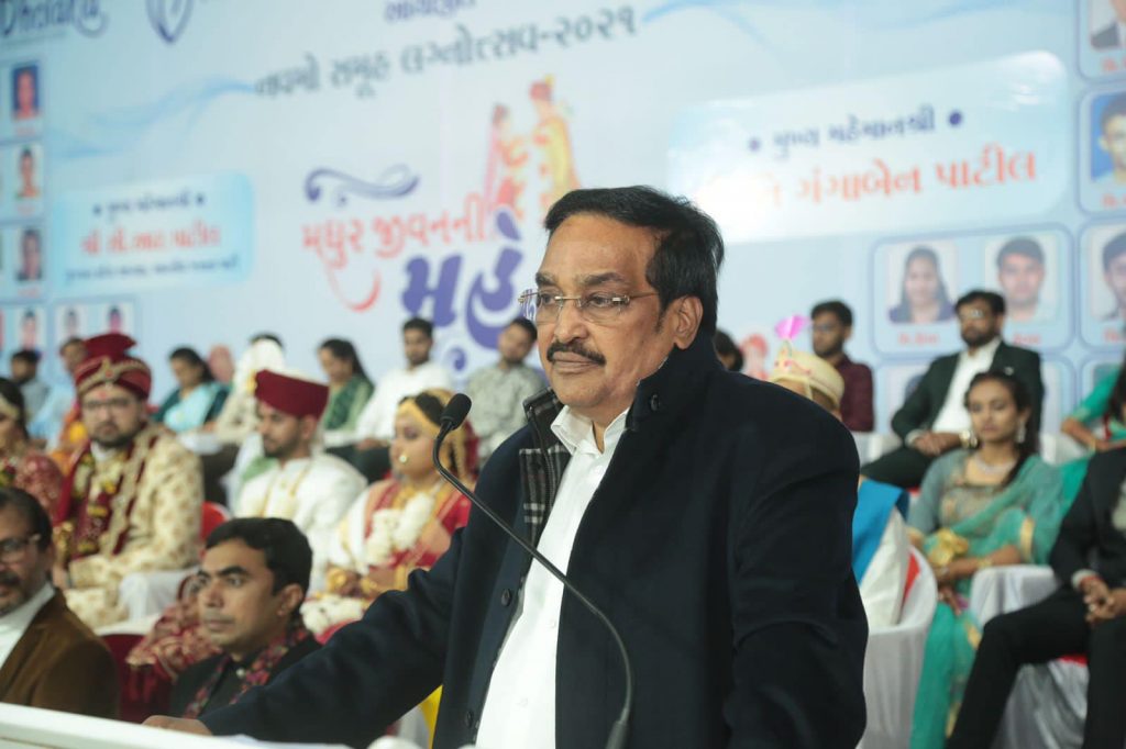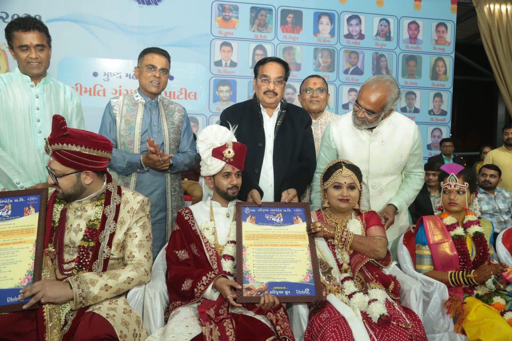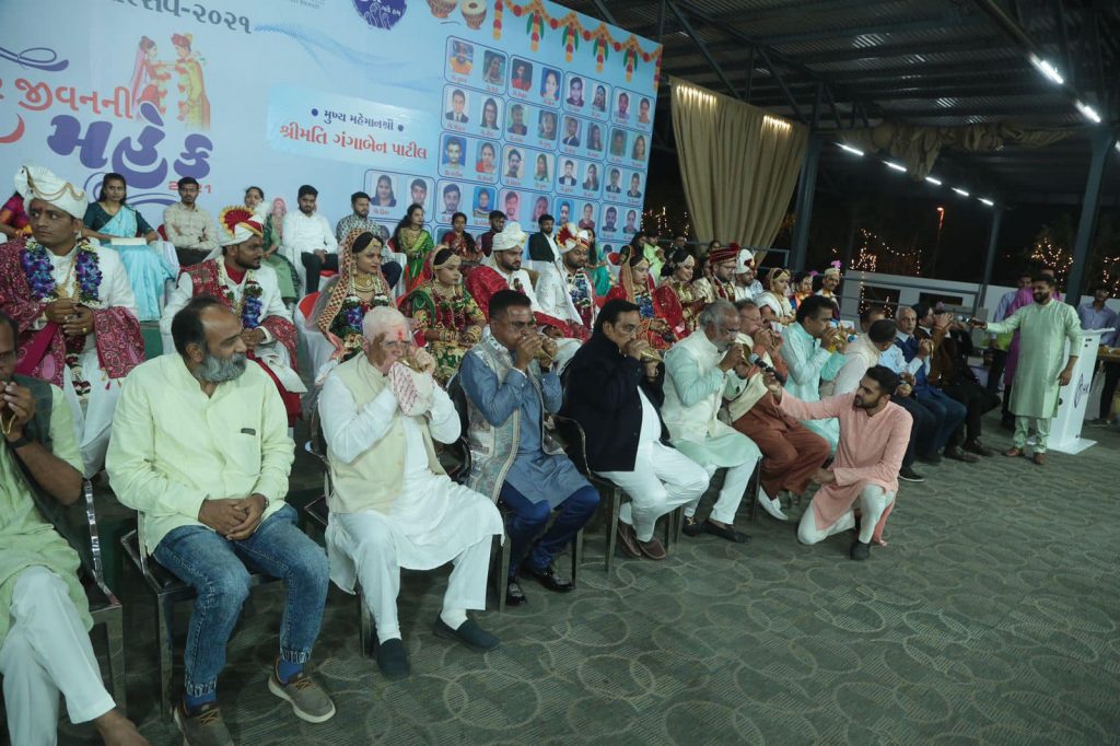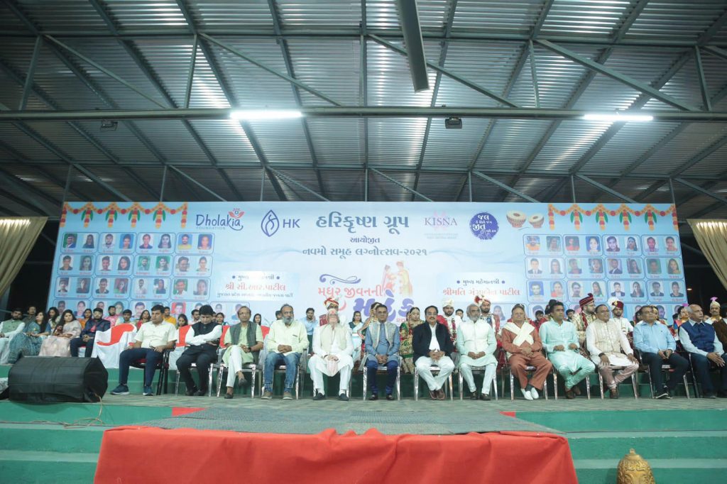 શ્રી સવજીભાઈ ધોળકિયાના માર્ગદર્શન હેઠળ હરિકૃષ્ણ ગ્રૂપ દ્વારા યોજાયેલા નવમા સમૂહ લગ્નોત્સવમાં હાજરી આપી. નવ-દંપતિઓને આશીર્વાદ અને શુભેચ્છાઓ પાઠવ્યા.