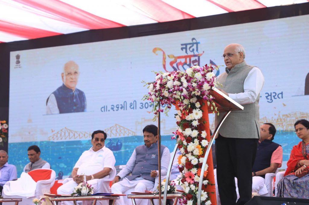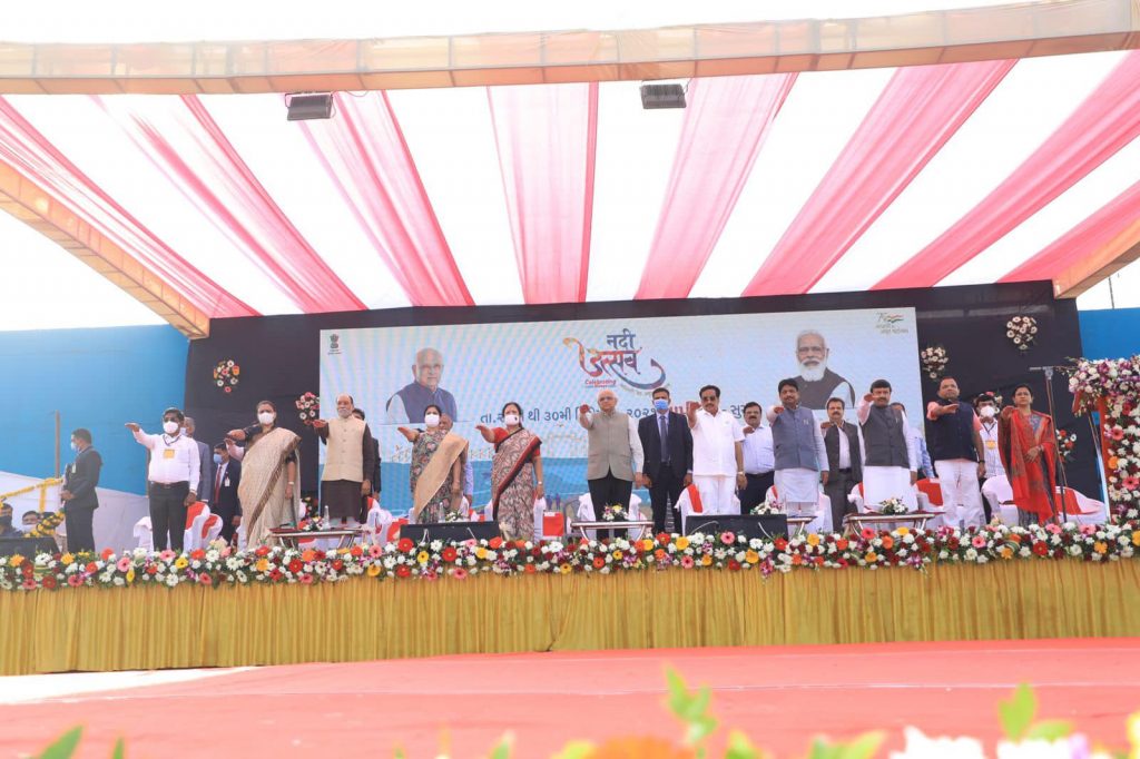 માનનીય મુખ્યમંત્રી શ્રી ભૂપેન્દ્રભાઇ પટેલની વિશેષ ઉપસ્થિતિ વચ્ચે આઝાદી કા અમૃત મહોત્સવ અને નર્મદા જળ સંપતિ પાણી પુરવઠા અને કલ્પસર વિભાગ અંતર્ગત સુરત સીંગણપુર કોઝ વે ખાતે “નદી મહોત્સવ”નો પ્રારંભ કરાવ્યો.