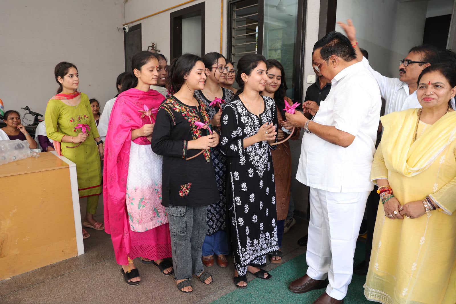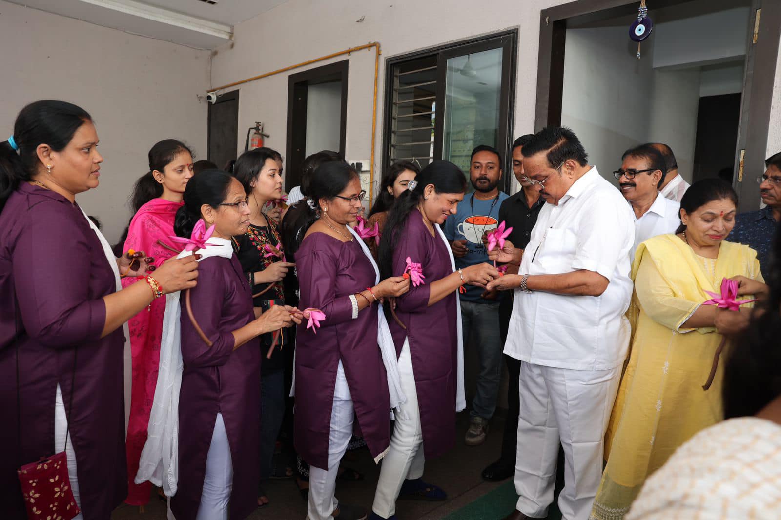 આજે સુરત ખાતેનાં મારા નિવાસ સ્થાને સિવિલ હોસ્પિટલની નર્સ બહેનો સાથે રક્ષાબંધનનું પવિત્ર પર્વ ઉજવ્યું. નર્સ બહેનોની સુખાકારી અને સ્વસ્થ સ્વાસ્થ્ય માટે ઇશ્વરને પ્રાર્થના કરી.