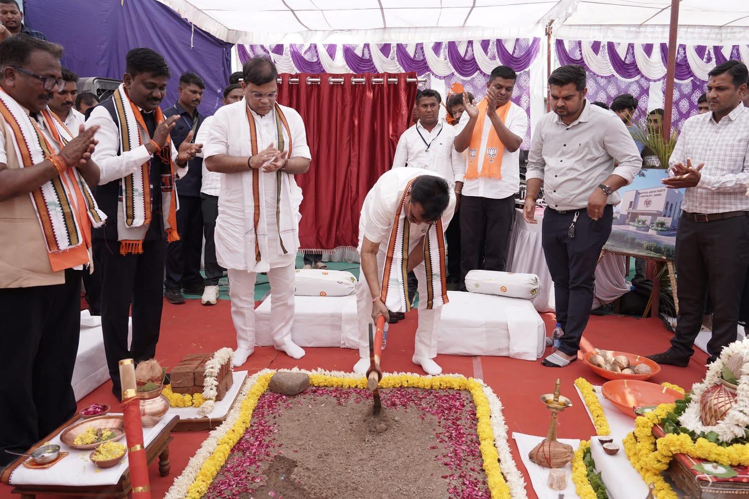 આજે આહવા ખાતે ભારતીય જનતા પાર્ટીના ડાંગ જિલ્લાના કાર્યાલયનું ભૂમિપૂજન કરવાનો અવસર સાંપડ્યો. ભારતીય જનતા પાર્ટીનાં “જનસેવા એ જ રાષ્ટ્રસેવા”નાં સંસ્કારને ડાંગનાં કાર્યકર્તાશ્રીઓ સાકાર કરશે જ એવો મને વિશ્વાસ છે.