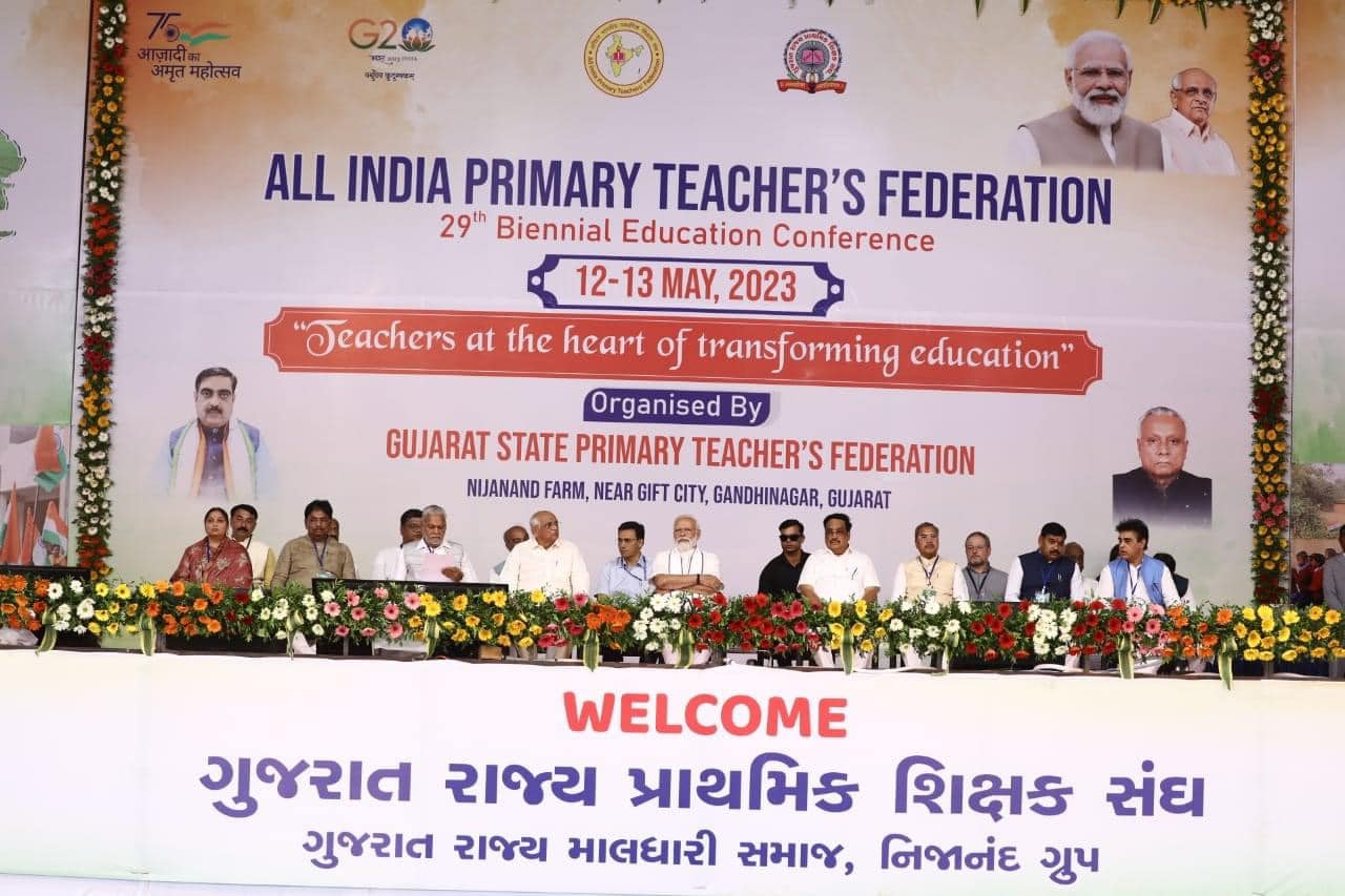 માનનીય પ્રધાનમંત્રી શ્રી નરેન્દ્રભાઇ મોદી સાહેબે ગાંધીનગર ખાતે અખિલ ભારતીય પ્રાથમિક શિક્ષક સંઘના 29મા દ્વિવાર્ષિક સંમેલનનો શુભારંભ કરાવ્યો એ પ્રસંગે હાજર રહેવાનું સૌભાગ્ય અને ગૌરવ સાંપડ્યું.