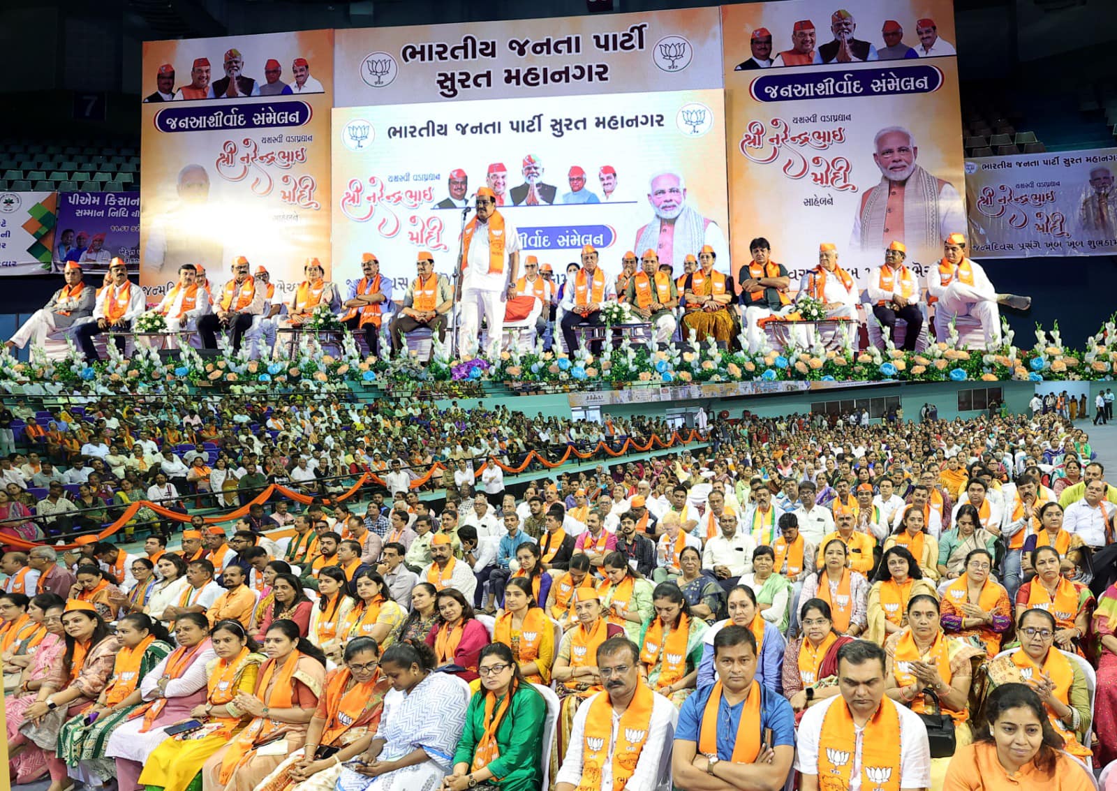 માનનીય પ્રધાનમંત્રી શ્રી નરેન્દ્રભાઇ મોદી સાહેબનાં જન્મ દિવસ નિમિત્તે આજે સુરત મહાનગર પાલિકા દ્વારા યોજાયેલા જનઆશીર્વાદ સંમેલનમાં ઉપસ્થિત રહી પ્રધાનમંત્રી શ્રીને જન્મદિવસની શુભેચ્છાઓ પાઠવી અને સુરતનાં નાગરિકો સાથે સંવાદ સાધ્યો.