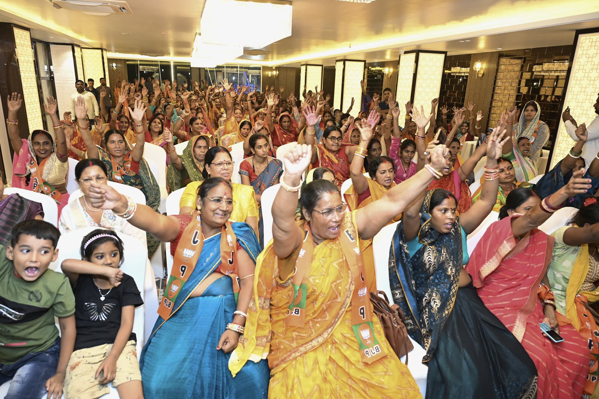 उपस्थित मातृशक्ति ने भारतीय जनता पार्टी की विजय के लिए हाथ उठाकर आशीर्वाद रूपी संकल्प दिया । यह जनसमर्थन NDA के प्रति अटूट विश्वास और संगठन की शक्ति का प्रमाण है।