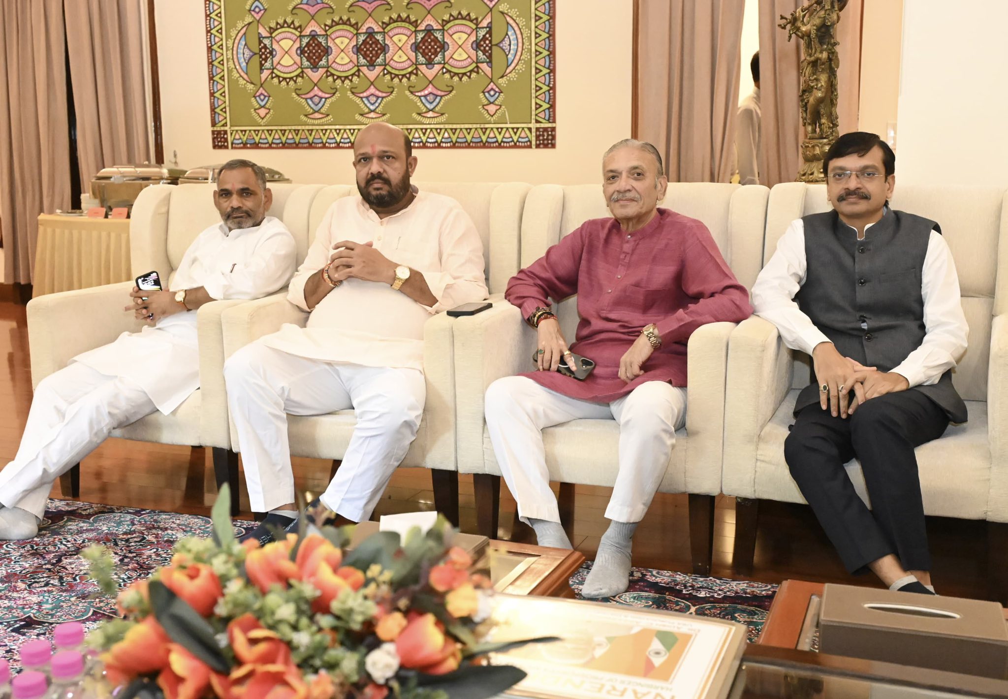 केन्द्रीय मंत्री श्री मनसुखभाई मांडविया जी के दिल्ली स्थित आवास पर उपराष्ट्रपति चुनाव से पूर्व माननीय राष्ट्रीय अध्यक्ष श्री जे पी नड्डाजी की विशेष उपस्थिति में गुजरात के राज्यसभा एवं लोकसभा सांसदों की महत्वपूर्ण बैठक आयोजित हुई, जिसमें उपस्थित रहकर सभी सांसदश्रीओं से मिलकर विशेष आनंद की अनुभूति हुई।