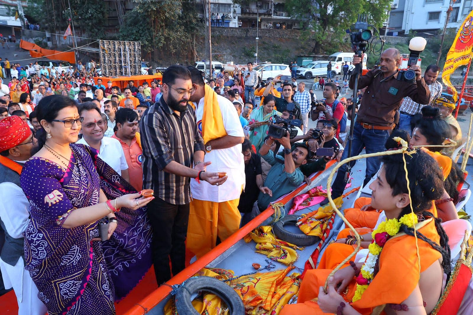 પ્રભુ શ્રી રામ નિજમંદિરે બિરાજીત થયા એ ઉત્સવને વધાવવા સુરતનાં સાકેત અને પ્રતિભા ફાઉડેશન દ્રારા મા તાપીને રામાયણનાં વિવિધ પ્રસંગો પ્રિન્ટ કરાયેલી 108 મીટર લાંબી સાડી અર્પણ કરાઇ. આ પ્રસંગે 108 ઋષિકુમારો દ્વારા માનનીય પ્રધાનમંત્રી શ્રી નરેન્દ્રભાઇ મોદી સાહેબનાં દિર્ઘાયુ માટે પ્રાર્થના કરાઇ. આ પ્રસંગે ઉપસ્થિત રહી ધન્યતા અનુભવી.