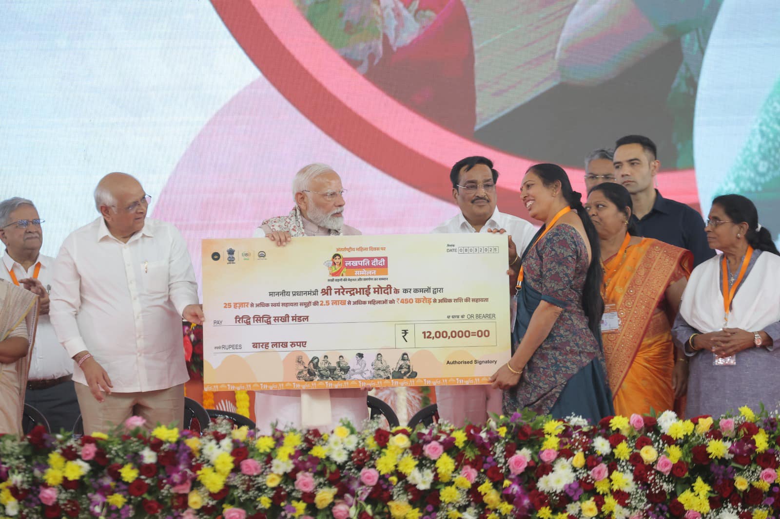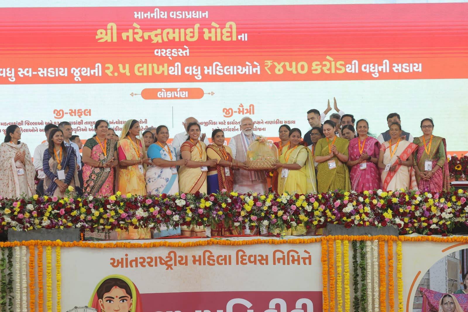 આજે વિશ્વ મહિલા દિવસે માનનીય પ્રધાનમંત્રી શ્રી નરેન્દ્રભાઇ મોદી સાહેબે નવસારી ખાતે લખપતિ દીદી સંમેલન અંતર્ગત 25 હજારથી વધુ સ્વ-સહાય જૂથની 2.5 લાખથી વધુ મહિલાઓને ₹ 450 કરોડથી વધુની સહાય વિતરિત કરી અને “લખપતિ દીદી”ઓને સન્માનિત કર્યા. માનનીય પ્રધાનમંત્રી શ્રી દ્વારા થયેલું સન્માન લખપતિ દીદીનાં જીવનમાં પ્રેરણા સમાન બનશે.