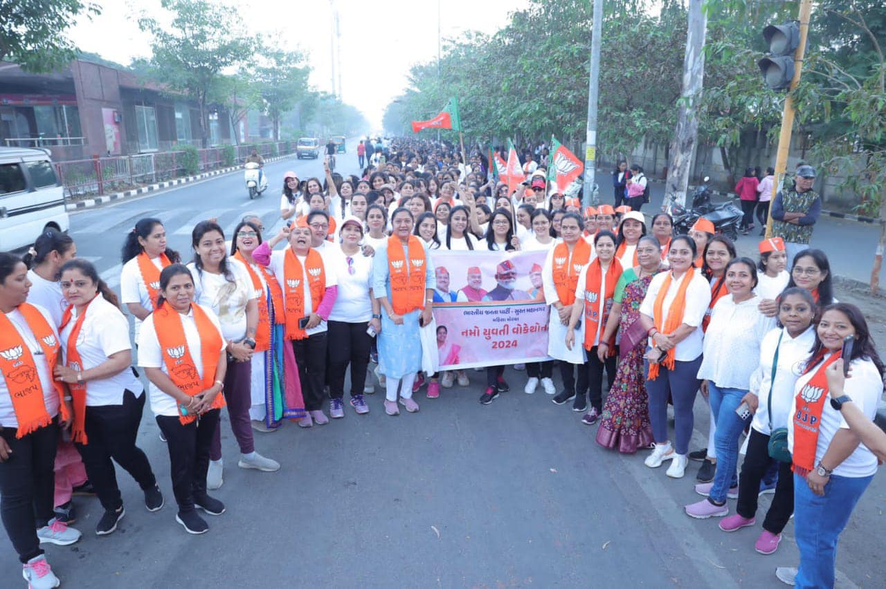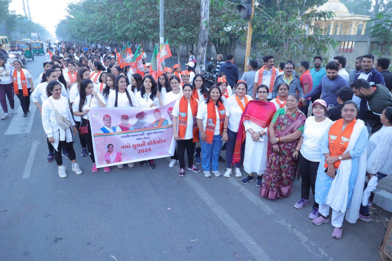 આજે સુરત શહેર મહિલા મોરચા દ્વારા “નમો યુવતી વોકેથોન 2024” યોજાઇ, આ પ્રસંગે ઉપસ્થિત રહી સૌનાં ઉત્સાહને વધાવ્યો. આજે સુરત શહેર મહિલા મોરચા દ્વારા “નમો યુવતી વોકેથોન 2024” યોજાઇ, આ પ્રસંગે ઉપસ્થિત રહી સૌનાં ઉત્સાહને વધાવ્યો.
