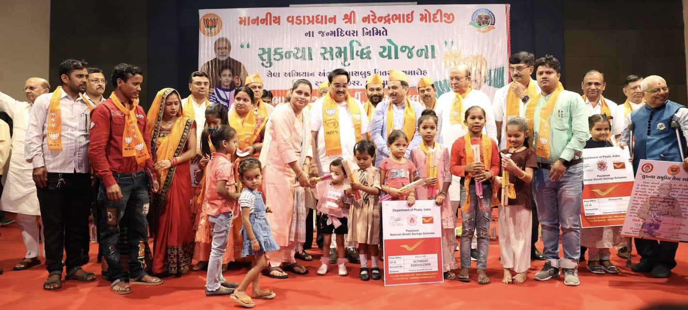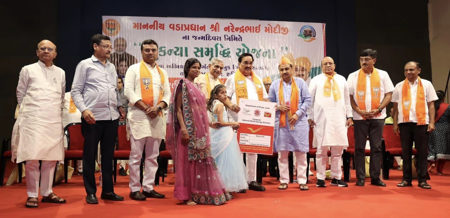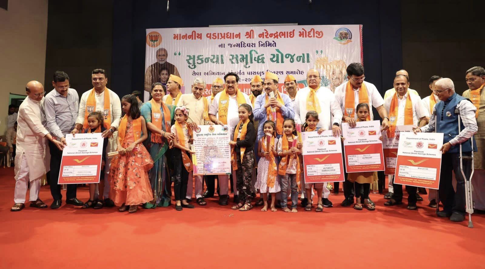 સેવા પખવાડિયા અંતર્ગત ભરૂચ જીલ્લા ભારતીય જનતા પાર્ટી અને અસ્મિતા વિકાસ કેન્દ્ર ત્રાલસાનાં સંયુક્ત ઉપક્રમે રૂપિયા 72 લાખ 72 હજારની રાષિમાંથી 7272 દિકરીઓનાં સુકન્યા સમૃદ્ધિ યોજના હેઠળ ખાતા ખોલવામાં આવ્યા, આ પ્રસંગે હાજરી આપી, સર્વ દિકરીઓને આશીર્વાદ પાઠવ્યા.
