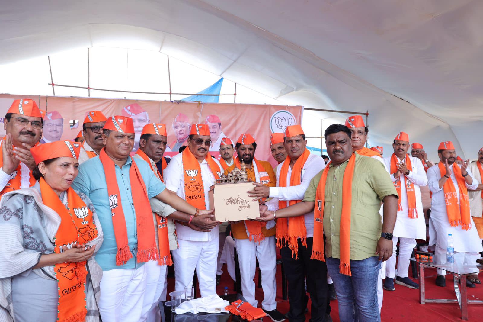 આ કાર્યક્રમમાં કેન્દ્રીય રાજ્યમંત્રી શ્રી કૌશલ કિશોરજી, રાજ્યકક્ષાના મંત્રી શ્રી મુકેશભાઈ પટેલ, શ્રી કુંવરજીભાઈ હળપતિ, સાંસદ શ્રી પ્રભુભાઈ વસાવા, સુરત જિલ્લા પ્રમુખ શ્રી ભરતભાઈ રાઠોડ, એસ.ટી.મોરચાના પ્રદેશ પ્રમુખ શ્રી અર્જુનભાઈ ચૌધરી, તાપી જિલ્લા પ્રમુખ શ્રી જયરામભાઈ ગામીત, સુરત શહેર પ્રમુખ શ્રી નિરંજનભાઈ ઝાંઝમેરા સહિત ધારાસભ્યશ્રીઓ, જિલ્લાના હોદ્દેદારો, આગેવાનો અને કાર્યકર્તાઓ ઉપસ્થિત રહ્યાં.