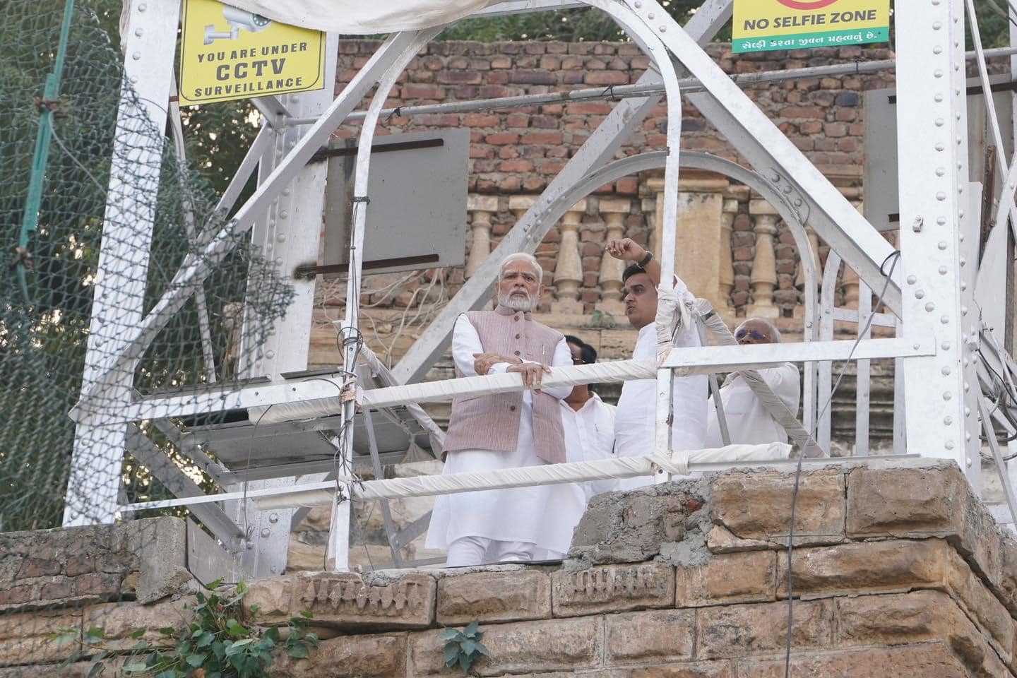 મોરબી દુર્ઘટના સ્થળની મુલાકાત માનનીય પ્રધાનમંત્રી શ્રી નરેન્દ્રભાઇ મોદી સાહેબે મોરબી દુર્ઘટના સ્થળની મુલાકાત લઇ હાથ ધરાયેલા સર્ચ ઓપરેશન અને રાહત કામગીરી અંગે વિગતો મેળવી.