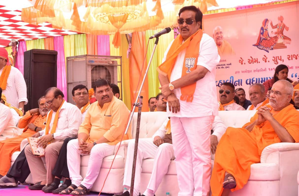 રાજકોટનાં જે.એમ.જે ગ્રુપ દ્વારા યોજાયેલા સમૂહ લગ્નોત્સવમાં હાજરી આપી.