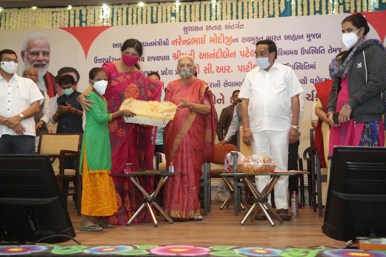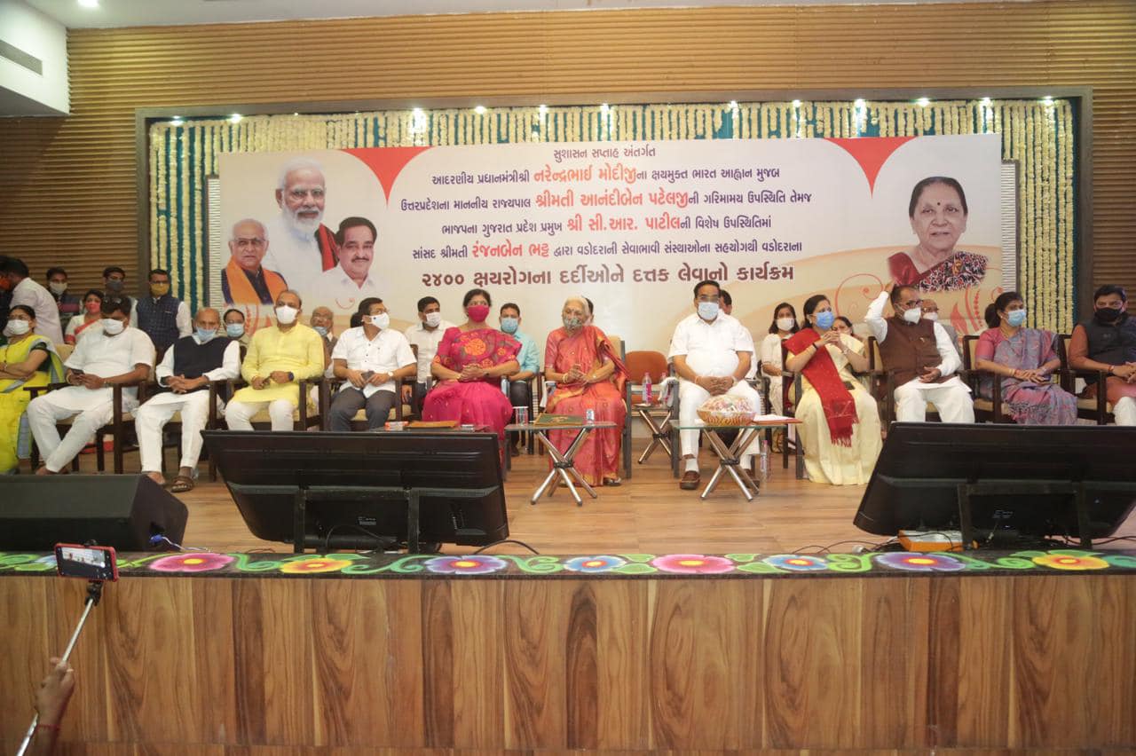 વડોદરા ખાતે સુશાસન સપ્તાહ અંતર્ગત ઉત્તર પ્રદેશનાં મહામહિમ રાજ્યપાલ શ્રીમતી આનંદીબેન પટેલની વિશેષ ઉપસ્થિતિ વચ્ચે સાંસદ શ્રીમતી રંજનબેન ભટ્ટનાં સહયોગથી સેવા ભાવી સંસ્થાઓ દ્વારા 2400 ક્ષય રોગના દર્દીઓને દત્તક લેવાયા. પ્રદેશ મહામંત્રીશ્રી ભાર્ગવભાઈ ભટ્ટ, રાજ્યમંત્રી શ્રીમતી મનિષાબેન વકીલ, મેયર શ્રી કેયુરભાઇ રોકડિયા, ધારાસભ્ય શ્રી જીતેન્દ્રભાઈ સુખડિયા, શ્રી યોગેશભાઇ પટેલ, શ્રીમતી સીમાબેન મોહિલે, શ્રી શૈલેષભાઇ મહેતા, શ્રી કેતનભાઇ ઇનામદાર, પ્રદેશ સહપ્રવક્તા ડો.ભરતભાઇ ડાંગર ઉપસ્થિત રહ્યા.