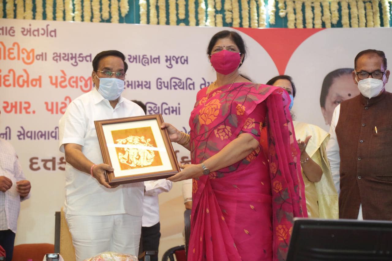 વડોદરા ખાતે સુશાસન સપ્તાહ અંતર્ગત ઉત્તર પ્રદેશનાં મહામહિમ રાજ્યપાલ શ્રીમતી આનંદીબેન પટેલની વિશેષ ઉપસ્થિતિ વચ્ચે સાંસદ શ્રીમતી રંજનબેન ભટ્ટનાં સહયોગથી સેવા ભાવી સંસ્થાઓ દ્વારા 2400 ક્ષય રોગના દર્દીઓને દત્તક લેવાયા. પ્રદેશ મહામંત્રીશ્રી ભાર્ગવભાઈ ભટ્ટ, રાજ્યમંત્રી શ્રીમતી મનિષાબેન વકીલ, મેયર શ્રી કેયુરભાઇ રોકડિયા, ધારાસભ્ય શ્રી જીતેન્દ્રભાઈ સુખડિયા, શ્રી યોગેશભાઇ પટેલ, શ્રીમતી સીમાબેન મોહિલે, શ્રી શૈલેષભાઇ મહેતા, શ્રી કેતનભાઇ ઇનામદાર, પ્રદેશ સહપ્રવક્તા ડો.ભરતભાઇ ડાંગર ઉપસ્થિત રહ્યા. Footer