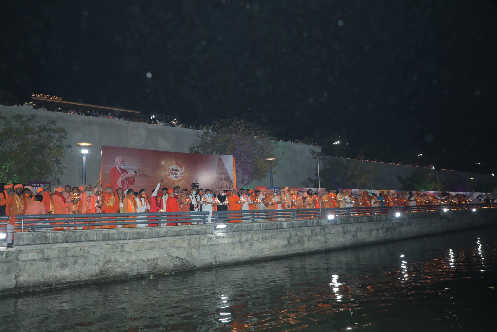 આ સાથે સંતો-મહંતોની પ્રેરક ઉપસ્થિતિમાં સાબરમતીની સમૂહ આરતી કરી, સંતોના ભંડારામાં ભોજન પ્રસાદ પીરસવાનો લ્હાવો લીધો.