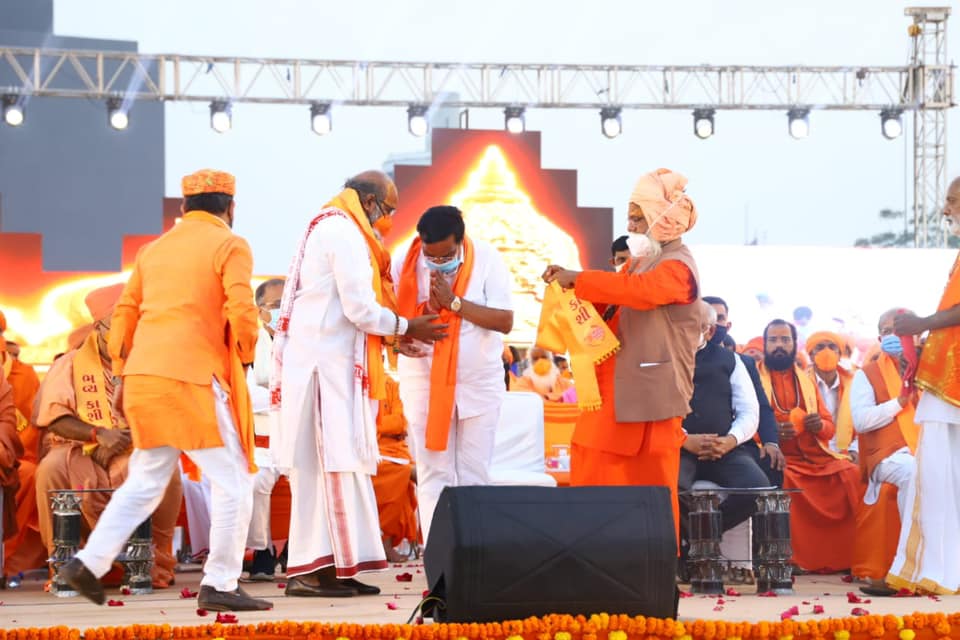 માનનીય પ્રધાનમંત્રી શ્રી નરેન્દ્રભાઇ મોદી સાહેબનાં નેતૃત્વમાં શ્રી કાશી વિશ્વનાથ ધામને મળેલા ભવ્ય અને પવિત્ર સ્વરૂપ નિમિત્તે પ્રધાનમંત્રીશ્રીનાં ભવ્ય અભિવાદન અને આશીર્વાદ આપવા સાબરમતીનાં કિનારે વિવિધ સંપ્રદાયનાં 1000થી વધુ સંતો-મહંતો અને માનનીય મુખ્યમંત્રી શ્રી ભૂપેન્દ્રભાઈ પટેલ અને પ્રદેશ સહ પ્રભારી શ્રી સુધીર ગુપ્તાજીની વિશેશ ઉપસ્થિતિમાં યોજાયેલા ‘ધર્માચાર્ય આશીર્વાદ સમારોહ’માં હાજરી આપી.