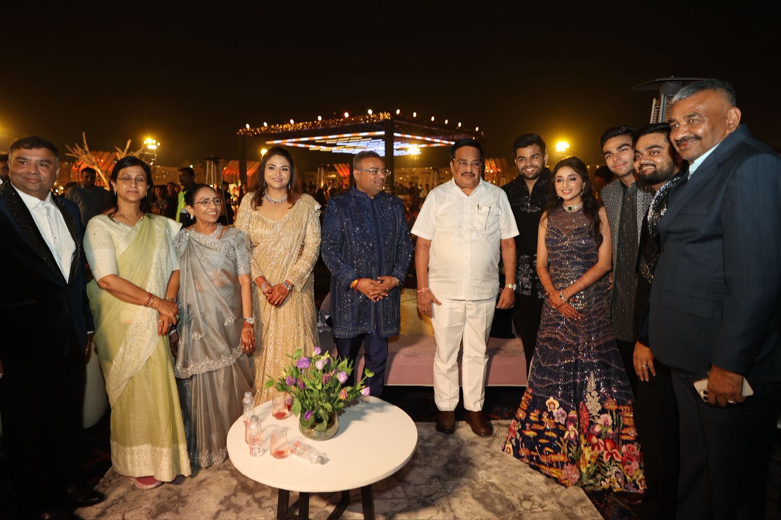 સુરત શહેરનાં ઉદ્યોગપતિ શ્રી નરેશભાઈ પટેલના દિકરા ચિ.જૈનુલના લગ્નપ્રસંગ નિમિત્તે યોજાયેલી સંગીત સંધ્યામાં ઉપસ્થિત રહી નવ દંપતિને દામ્પત્યજીવનનાં આશીર્વાદ અને શુભેચ્છાઓ પાઠવ્યા. Footer
